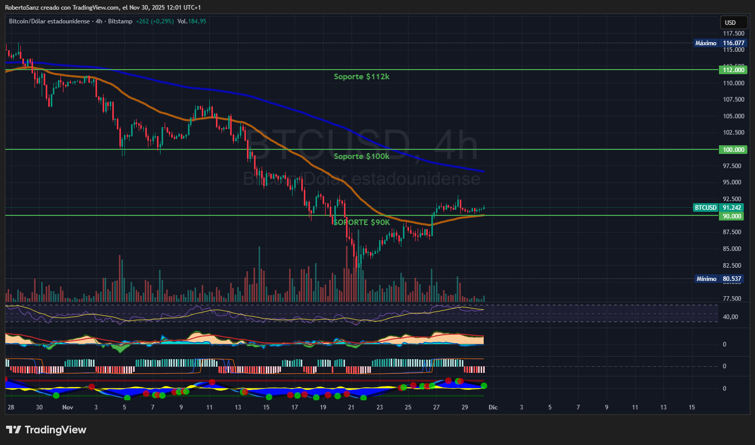 La tendencia de fondo sigue bajista mientras no recupere la zona 103k–110k.