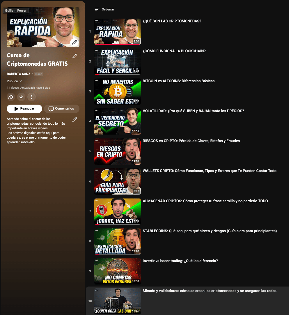 Aprende sobre el sector de las criptomonedas, conociendo todo lo más importante en breves vídeos. Los activos digitales están aquí para quedarse, es el mejor momento de poder aprender sobre ello. En su canal podrás seguir el contenido más actualizado con noticias, herramientas y mucho más.