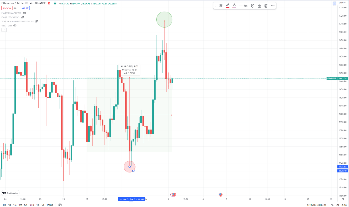 Tienes que saber que lo haga ETH va a estar reflejado en el resto de las altcoin, su comportamiento va a ser similar. Máximo de 1.715$ y mínimo de 1.530$.