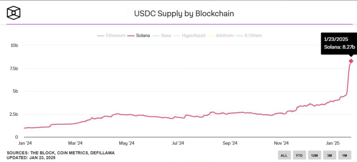 Durante este auge, se lanzaron las memecoins TRUMP y MELANIA en la red Solana, alcanzando capitalizaciones de mercado de 15.390 millones y 8.000 millones de dólares, respectivamente.