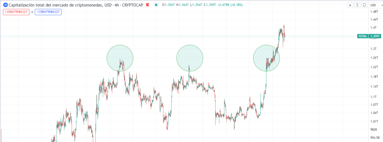 El MarketCap total como ya dijimos rompió con esa resistencia y el dinero dentro del mercado están entrando