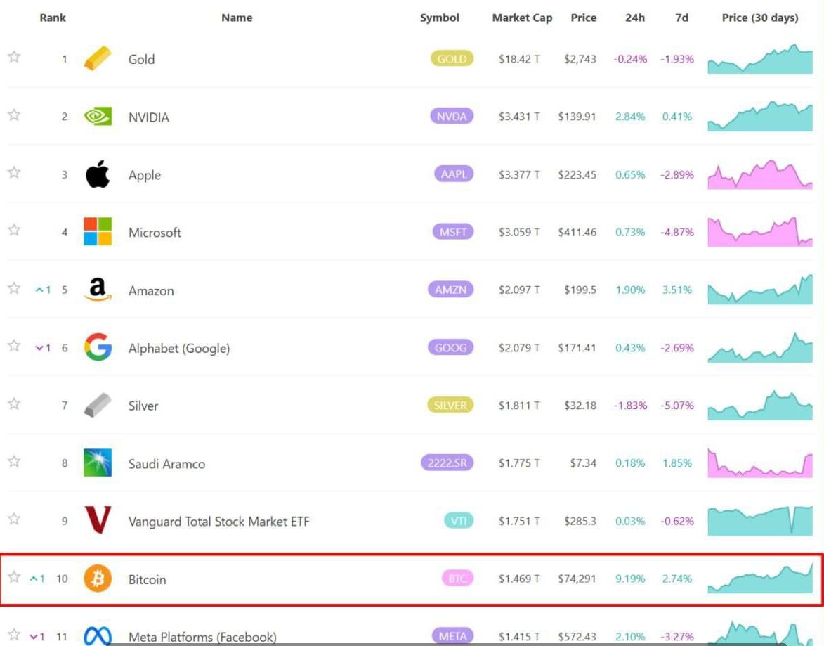 Bitcoin Rompe Su Récord Histórico: Bitcoin alcanzó un nuevo máximo histórico de más de 75,000 dólares, superando el anterior máximo de alrededor de 73,800 dólares.